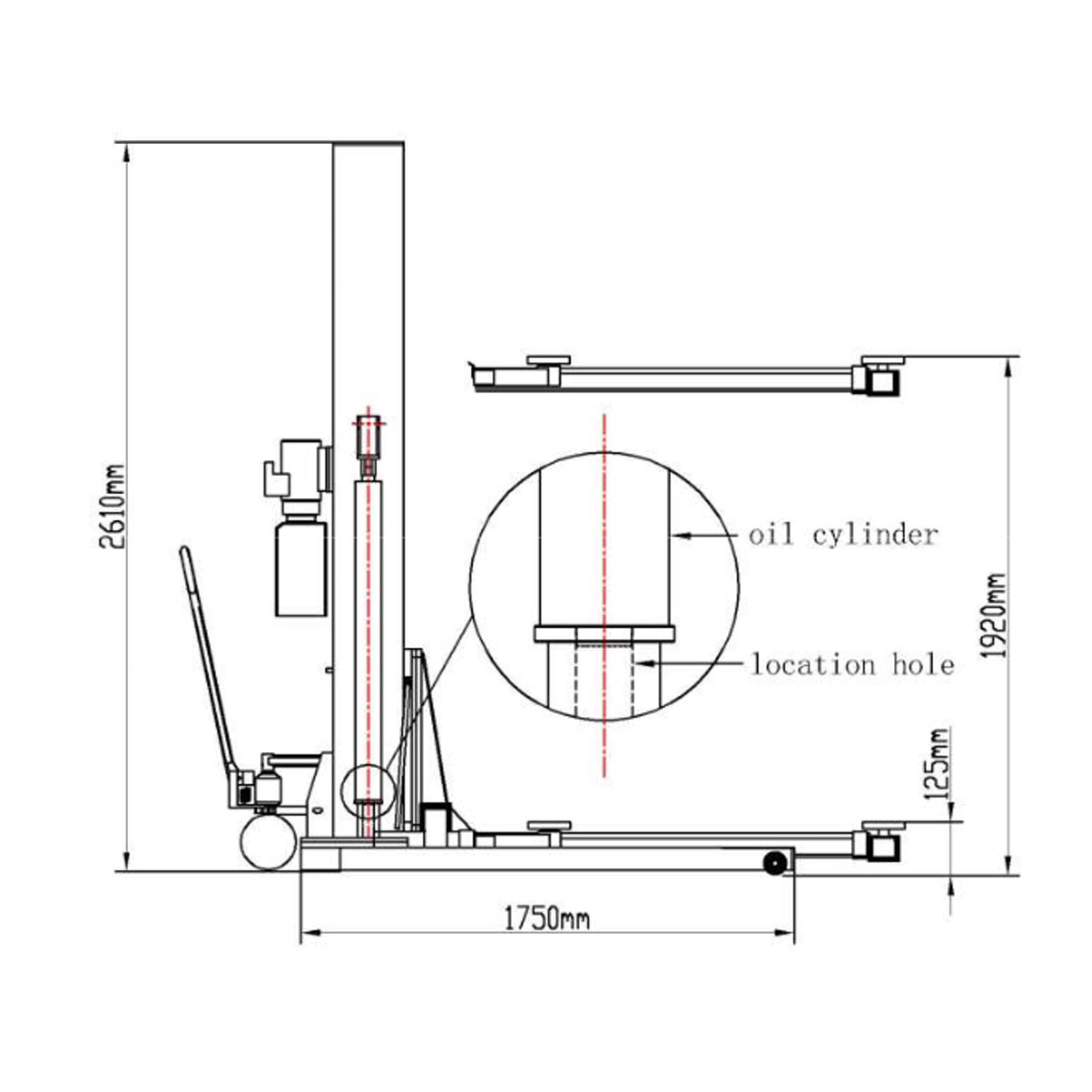 Mobile 1-post lift TST25SP Mobile 1-post lift is ideal for locations with limited space. Equipped with CE-certified safety system. Features ...